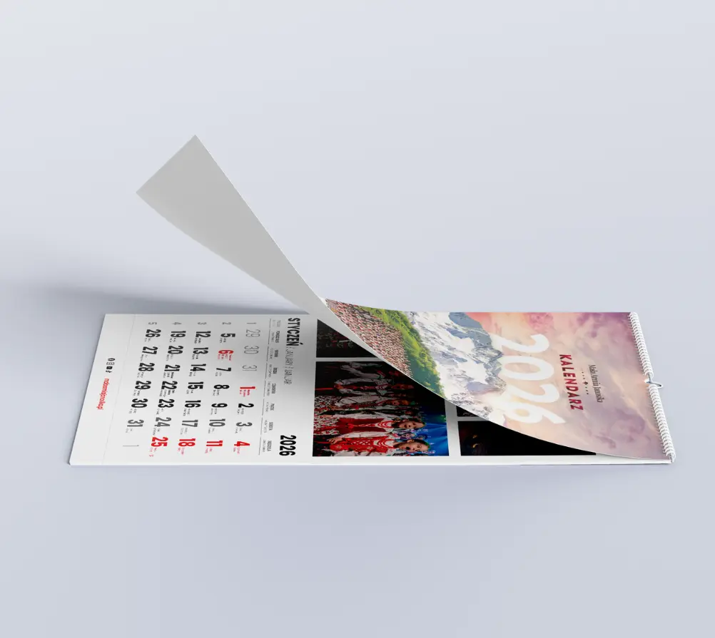 Kalendarz 2026 w formacie A3 to coś więcej niż zwykły terminarz. Duży, czytelny i efektowny – stanie się wyjątkową ozdobą każdego wnętrza i praktycznym towarzyszem na cały rok. Każdego dnia przypomina o sile tradycji, energii młodych talentów i pięknie góralskiej kultury. To symbol przynależności do wspólnoty, która nie tylko pielęgnuje dziedzictwo regionu, ale także inspiruje do działania i łączenia pokoleń.